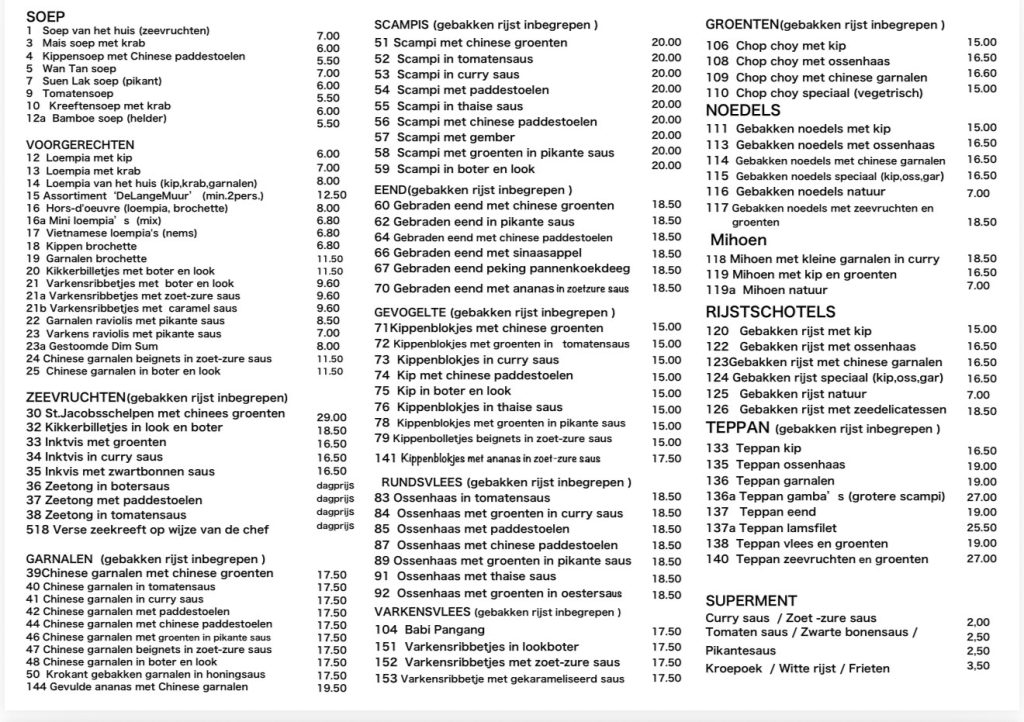 Chinees menu’s